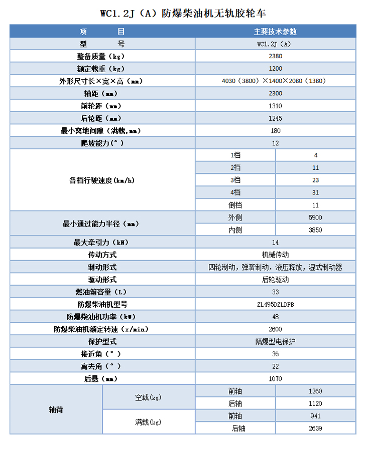 一、WC1.2J(A)防爆柴油機無軌膠輪車簡介