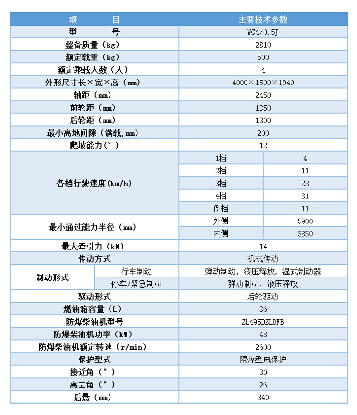 WC4/0.5J防爆柴油機無軌膠輪車 |