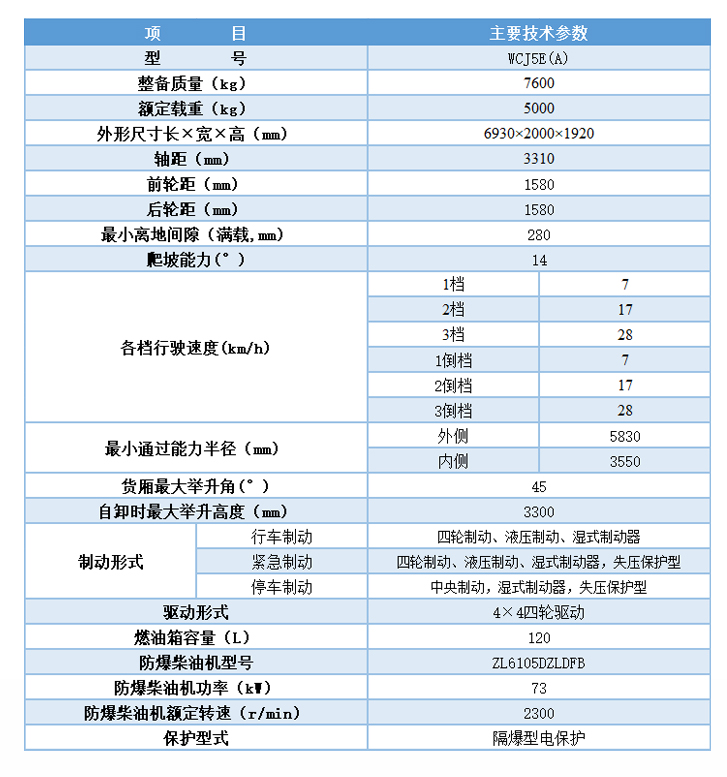 WCJ5E(A)防爆柴油機(jī)無軌膠輪車 |