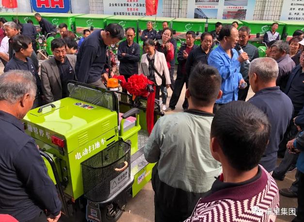 技術(shù)張總工正在為大家介紹這次會議特別推出的新產(chǎn)品:ZLS—1600型掃地車是新時代為三農(nóng)服務(wù)的好幫手!