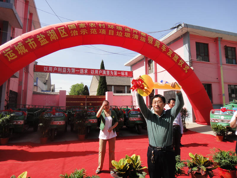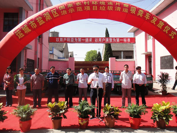 2012年5月16日早上九時(shí)三十分,“運(yùn)城市鹽湖區(qū)國(guó)家農(nóng)村環(huán)境連片整治示范項(xiàng)目垃圾清運(yùn)吸糞車發(fā)放儀式”在山西卓里集團(tuán)舉行。