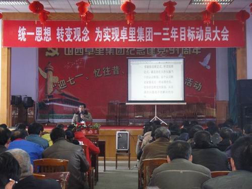 山西卓里集團(tuán)有限于2012年12月14日在公司賓館二樓會議室召開“統(tǒng)一思想 轉(zhuǎn)變觀念 為實(shí)現(xiàn)卓里集團(tuán)一三年目標(biāo)動員大會”。