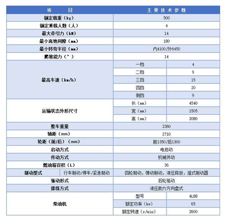 該車是我公司研制的新一代地下自卸車,配備國Ⅲ排放標準、增壓中冷、電控高壓共軌噴射型式常柴4L88柴油機,輸出功率65kW,動力強勁,特別適合于金屬非金屬礦山檢修作業(yè)時運料和運人的客貨兩用車。結構緊湊,體積較小,適合于小斷面、窄巷道作業(yè)。制動采用濕式制動系統(tǒng),使工作更加可靠,因系統(tǒng)故障和制動管路發(fā)生任何故障而失壓時,制動器均能自動實現(xiàn)制動,確保車輛的安全。